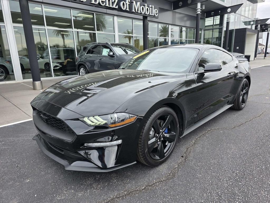 4-Wheel Disc Brakes, 4G LTE Wi-Fi Hotspot Removal, ABS brakes, Adaptive Cruise Control, Air Conditioning, Alloy wheels, AM/FM Stereo, Auto High-beam Headlights, Auto-dimming Rear-View mirror, Black Blade Decklid Spoiler, Black Front & Rear Pony Badges, Black Grille, Black Mirror Caps, Brake assist, Bumpers: body-color, Compass, Delay-off headlights, Driver door bin, Driver vanity mirror, Dual front impact airbags, Dual front side impact airbags, Electronic Stability Control, Emergency communication system: 911 Assist, Exterior Parking Camera Rear, Ford Safe & Smart Package, Four wheel independent suspension, Front anti-roll bar, Front Bucket Seats, Front Center Armrest, Front reading lights, Fully automatic headlights, Illuminated entry, Knee airbag, Leather Shift Knob, Low tire pressure warning, Mustang Nite Pony Package, Occupant sensing airbag, Outside temperature display, Overhead airbag, Overhead console, Painted Black Roof, Panic alarm, Passenger door bin, Passenger vanity mirror, Power door mirrors, Power steering, Power windows, Radio data system, Rain sensing wipers, Rear anti-roll bar, Rear Parking Sensors, Rear window defroster, Remote keyless entry, Security system, SiriusXM Radio, Speed control, Speed-sensing steering, Speed-Sensitive Wipers, Split folding rear seat, Steering wheel mounted audio controls, SYNC 3 Communications & Entertainment System, Tachometer, Telescoping steering wheel, Tilt steering wheel, Traction control, Trip computer, Variably intermittent wipers, Voice-Activated Touch-Screen Navigation System, Voltmeter, Wheels: 18' x 8' Machined-Face Aluminum.
